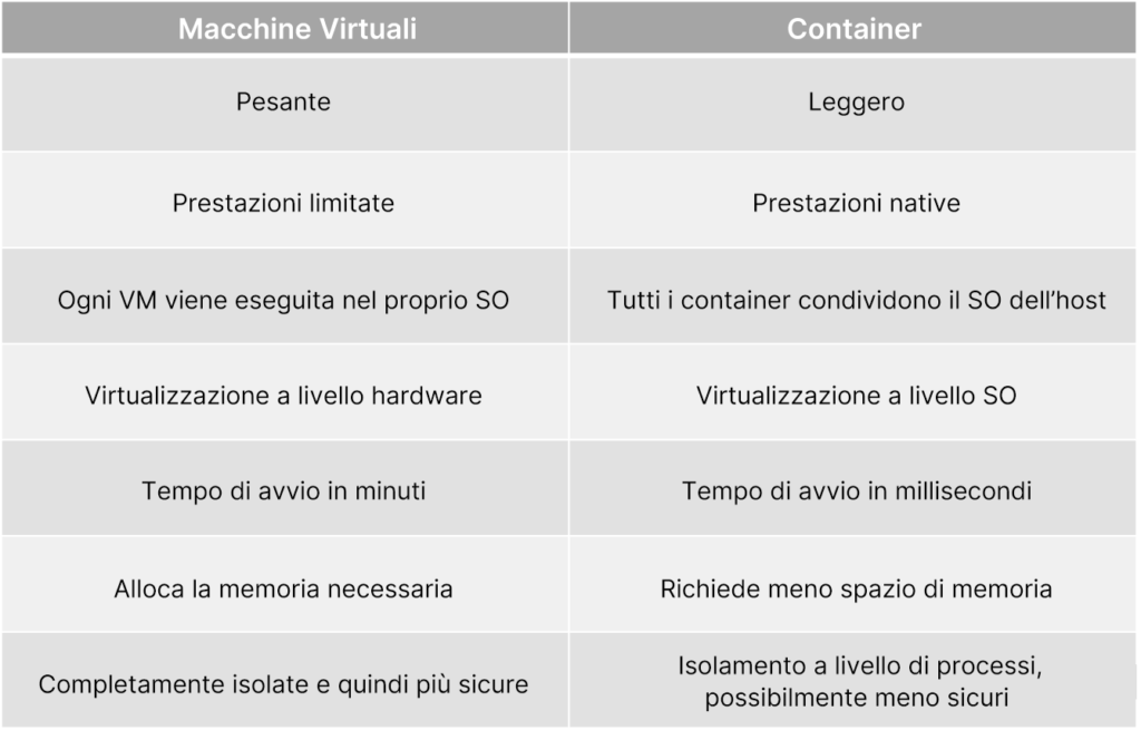 Sia le VM che i container presentano vantaggi e svantaggi e la decisione finale dipenderà dalle vostre esigenze specifiche.