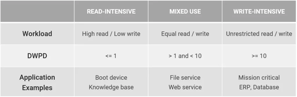 提高 SSD 耐久性,當然有一些技術可以達成;例如,優秀的演算法可以均衡磨損 NAND flash 以便延長 SSD 壽命; 超容量快取 (Over Provisioning),舉例來說 NAND flash 內部有 960GB,但只呈現 800GB,額外的 160GB 用來取代已寫壞的 block,這也可以讓 SSD 使用更久;加大快取 (Cache) 大小,有些寫入動作先在 Cache 運作,確定之後再回寫到 NAND flash;最後,TRIM 命令可以回收空間再利用。承上描述,Ultrastar DC SN840 就貼心設計可提供使用者根據需求等價交換容量(1)以換取所需的耐寫度(2)。舉例而言, 1,920 GB (1 DWPD) 的 SSD,隨時可通過軟體設定模式轉換,以 320GB 容量的代價,直接變成 1,600GB (3 DWPD) 的高耐寫度 SSD。